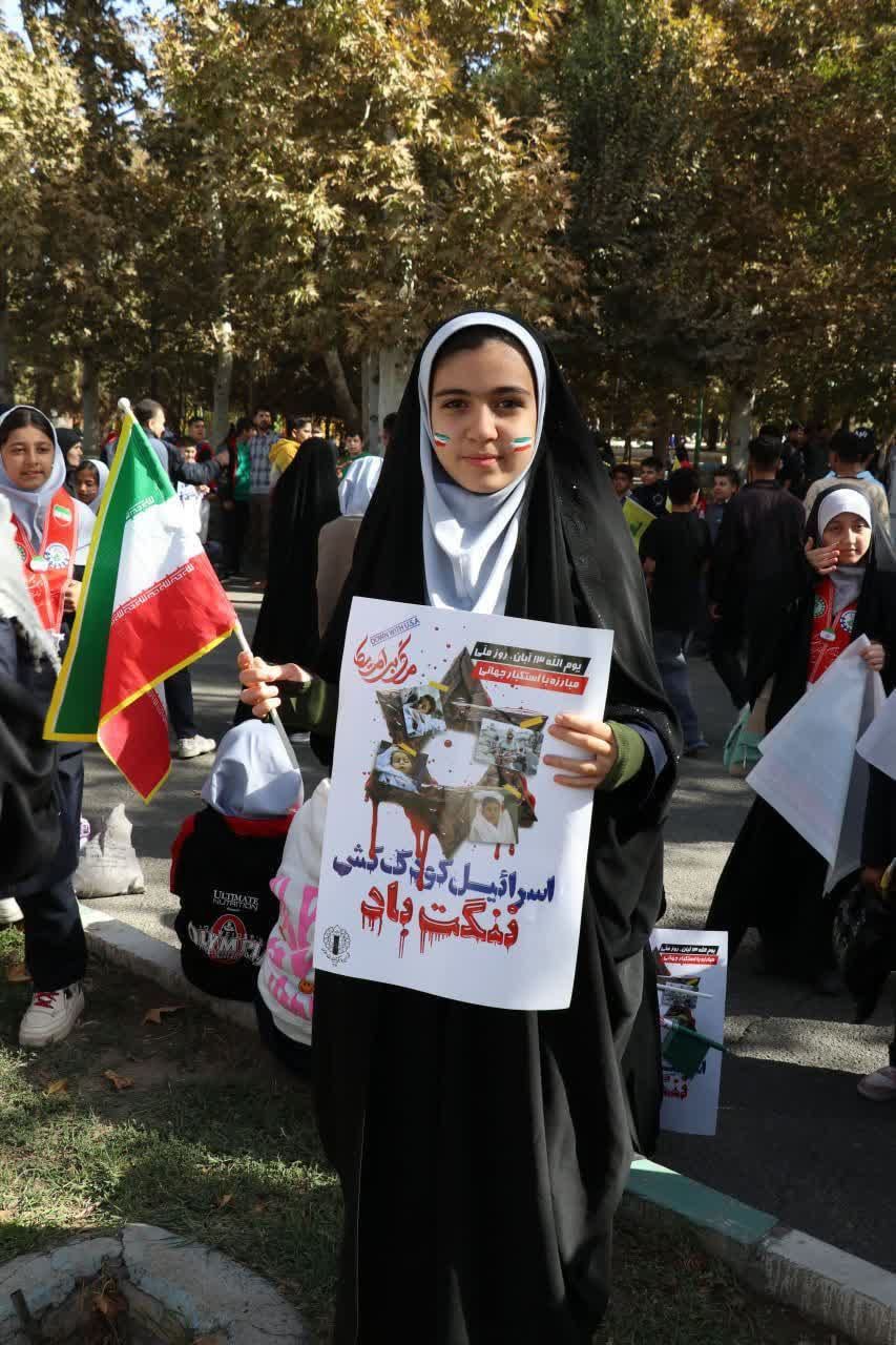 شعار محوری این مراسم «مرگ بر آمریکا» و «مرگ بر اسرائیل» بود. شرکتکنندگان با اهتزاز پرچمها و پلاکاردهای حاوی شعارهای انقلابی، همبستگی خود را در این راهپیمایی پرشکوه به نمایش گذاشتند.
