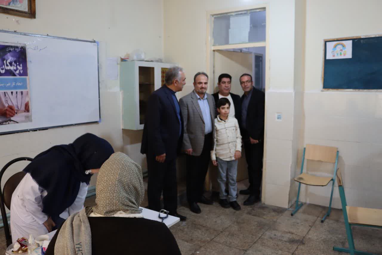 امروز مهندس محمد قدس شهردار ماهدشت با همراهی سرپرست معاونت خدمات شهری و محیط زیست شهرداری از محل برگزاری طرح خدمات پزشکی رایگان در مدرسه ابتدایی امام حسن مجتبی علیهالسلام بازدید کرد.