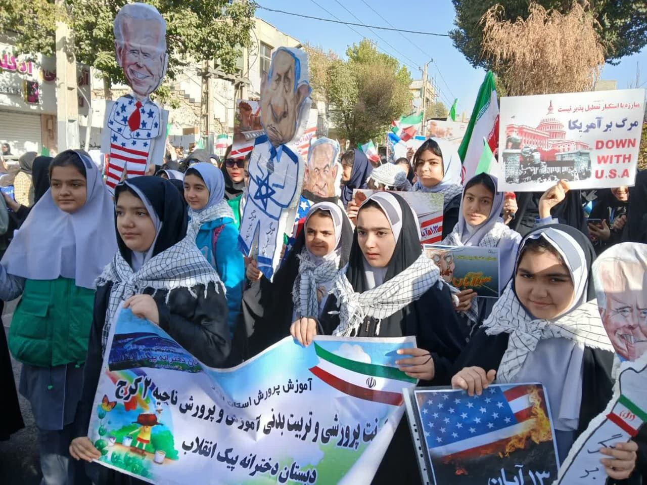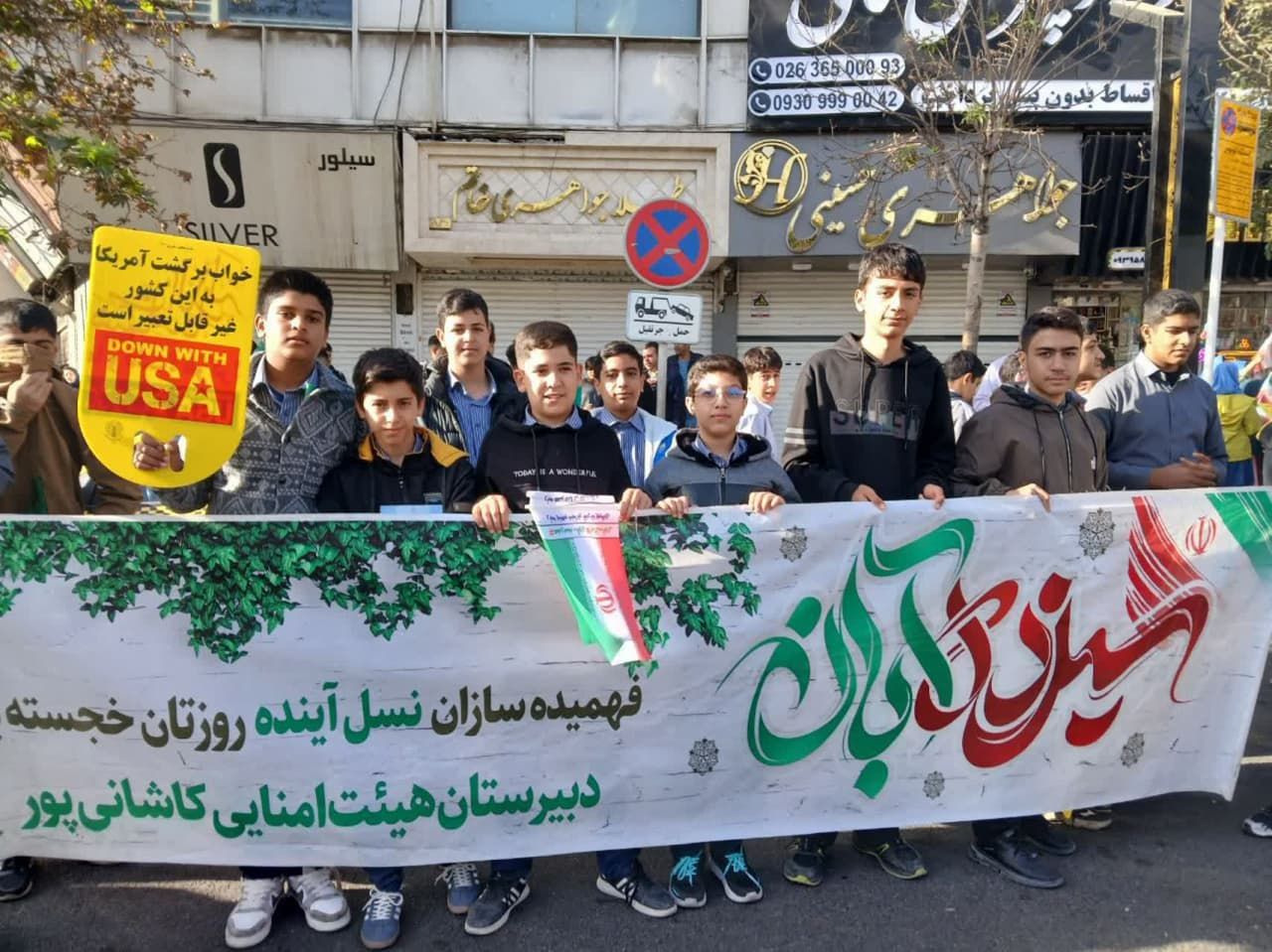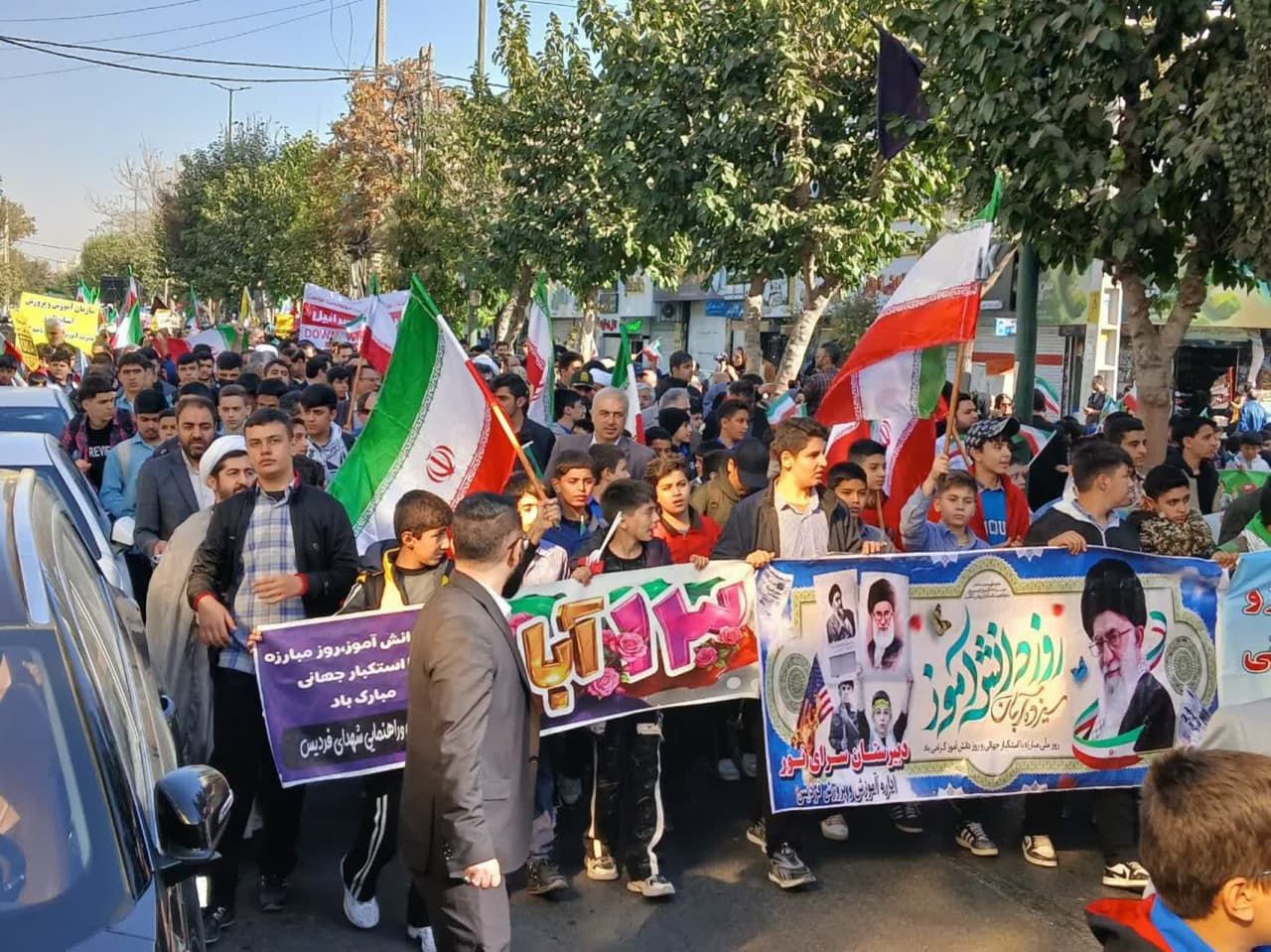 راهپیمایی ۱۳ آبانماه در شهرستان فردیس با شور و شعور دانش آموزان فردیسی در حال برگزاری است