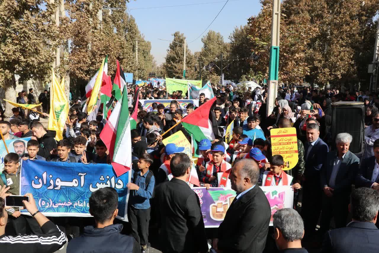 شعار محوری این مراسم «مرگ بر آمریکا» و «مرگ بر اسرائیل» بود. شرکتکنندگان با اهتزاز پرچمها و پلاکاردهای حاوی شعارهای انقلابی، همبستگی خود را در این راهپیمایی پرشکوه به نمایش گذاشتند.